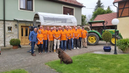 Die Oldies bedanken sich bei Angelika für die Unterstützung mit Jubiläumsshirts die Freude bei den Gastgebern auslöste.