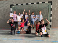 Toll zu sehen wie die aufgebauten Stationen angenommen wurden, an denen verschiedene Übungen absolviert worden sind. In der zweiten Hälfte wurde sich dem Ball gewidmet, ob Soft- oder Handball, einige konnten schon gut mit dem Ball umgehen. Die Kinder waren sehr motiviert und wollen am Montag zum Training kommen!